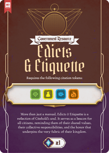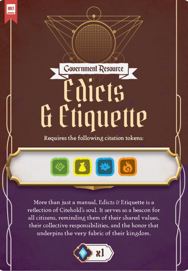 Below, you will find examples of government resource citations, ensuring that the laws and decrees that govern realms are properly recorded and acknowledged.